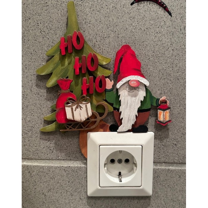 Lichtschalterdeko "Wichtelset - Ho Ho Ho" mit Zubehör ca. 15x18 cm für eckige Lichtschalter ca. 8cm (links) Verpackungseinheit: 5 Stück EAN: 4251267130030 Empfohlener Enkundenpreis: 7,90€